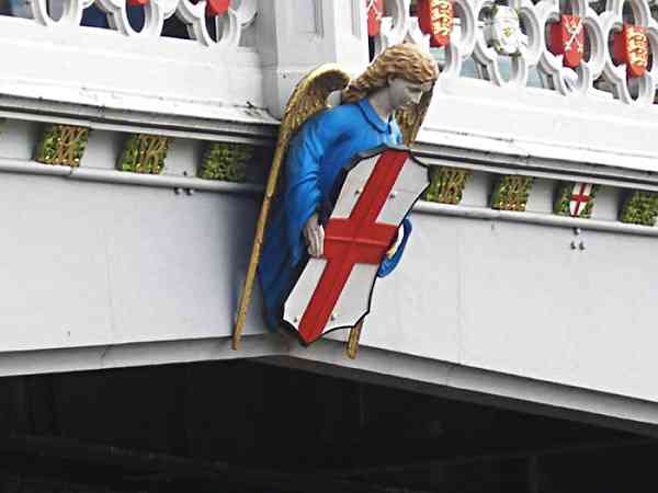 In the centre of the arch on each side of the bridge is this angel bearing the shield of arms of St. George.
