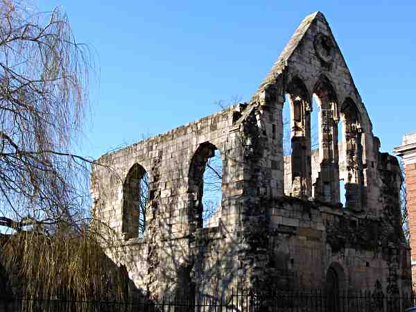 Remains of the Infirmary of St. Leonard's Hospital.Founded in the late 11th century and initially dedicated to St. Peter and attached to the Minster it was rededicated in 1137. It was dissolved in 1538. Photo: taken 2 February 2007 |