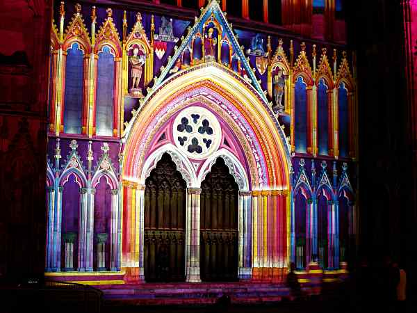 West door of the Minster during the October 2005 illuminations.