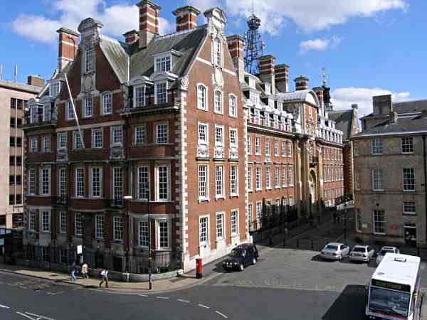 Early 20th century.When the new station was built with it's accompanying hotel in 1877-8, the old buildings were used as offices. By the beginning of the 20th century, new offices were required and the North Eastern Railway built this building and opened it in 1906. For the next 100 years it was occupied at least in part by successive railway companies from the LNER, through BR to GNER. Now the use of the building is about to change, but what to? Suggestions are that it may become York's first 5 star hotel ... we'll see. Photo: taken 3 June 2007 |