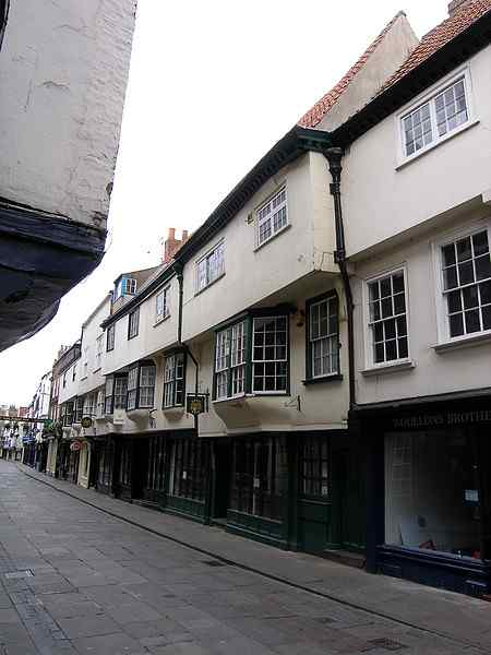 The 17th century rebuilding of number 60 (on right) with a jettied second floor less protruding than original is seen in this view. (Ref. 1)