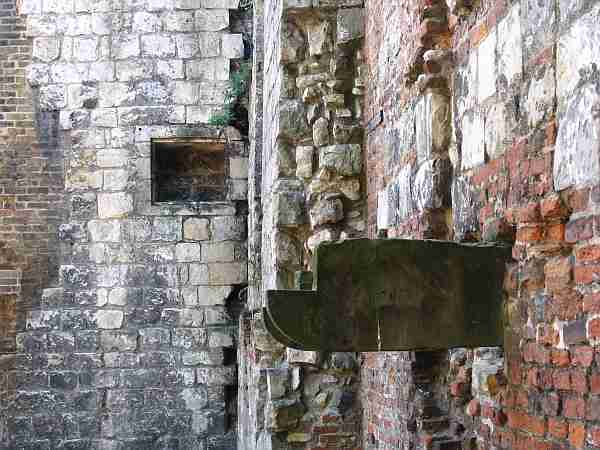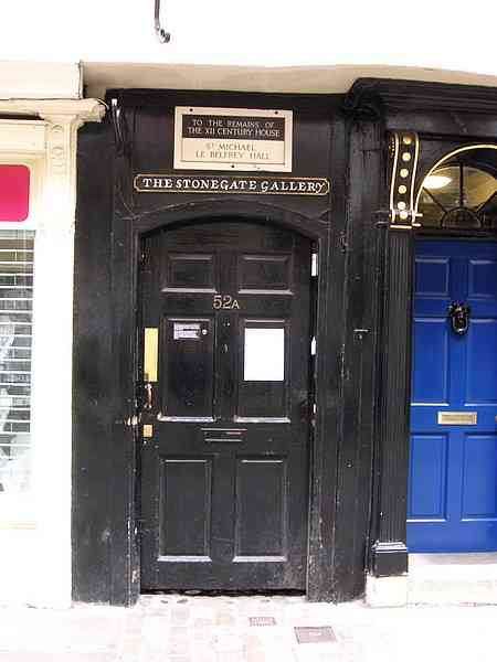 Norman, late 12 CenturyThe remains consist of fragments of two walls seen from the inside which is now a small courtyard. On the left is the south west wall including a window, whilst below is the south east wall (looking towards stonegate).(Ref. 1) ![]()
