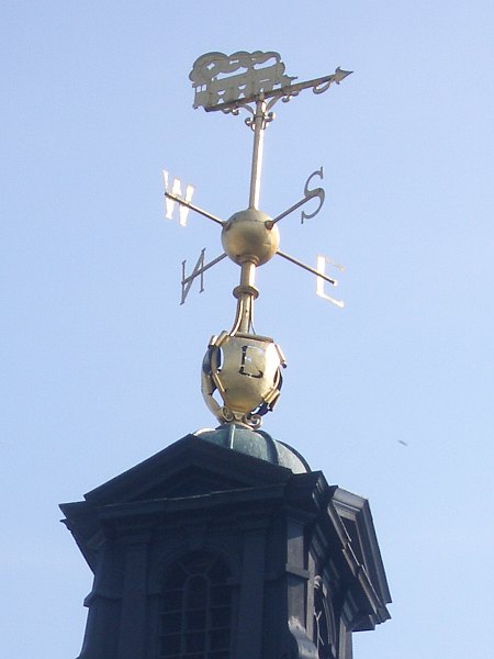 Weather vane and (below) decoration on topmost windows showing the dedication to producing a totally finished building.<>p>