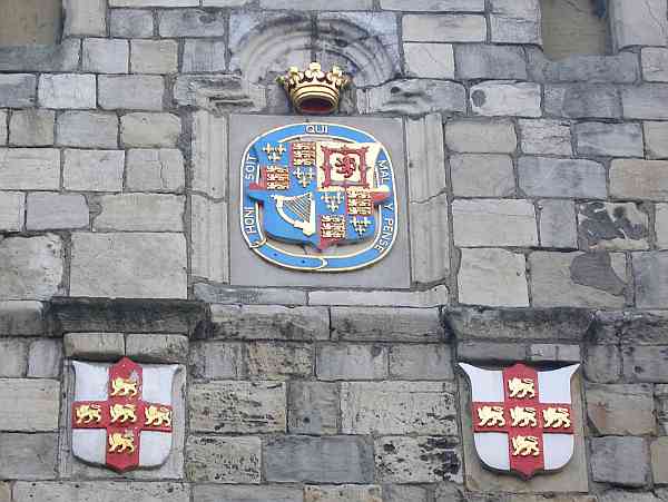 The royal arms and the City's arms (twice).