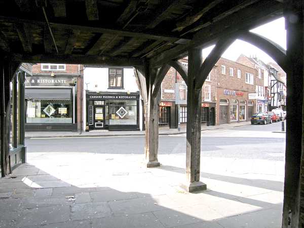 A lightened view showing the ceiling of the College Street passage.Manipulated photo to show the detail in the ceiling of the 17th century building over College Street. Until the second half of the 20th century this was the entrance into College Street from Goodramgate. Photo: taken 29 April 2007. |