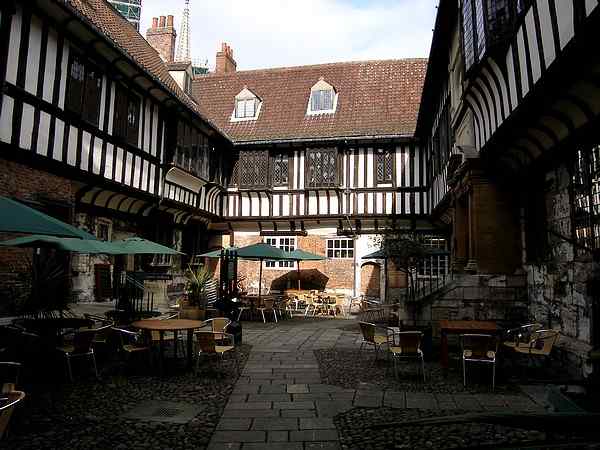 Interior courtyard.The courtyard today is quite a different site to what it was at the turn of the 20th century when the building was divided up into tenements for the poor. This adaption of the building in the 17th and 18th centuries extensively altered the interior of the structure such that on renovation in the early 20th century the original layout when occupied by the chantry priests could not be determined. (Ref. 1) Photo: taken Sunday morning, 29 April 2007. |
