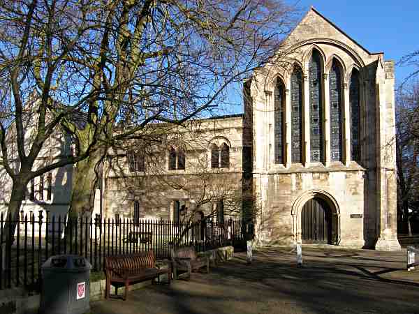 The Minster LibraryOriginally the chapel of the archbishop's palace. A plaque on the wall reads: Within the Archbishop's palace here, King Richard III invested his son as Prince of Wales on the 8th September, 1483. Photo: taken 24 February 2007 |