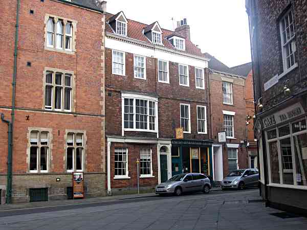 17, 19 are late 17th century, 21 is early 18th century.Number 21, on left is only the right-hand half of the early 18th century building, with the left-hand half being absorbed into the adjacent hotel. Numbers 17 and 19 are the very narrow late 17th century building on the right, 17 in front, 19 behind. Photo: taken 3 June 2007 |