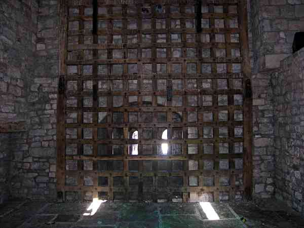 The bar was heightened in the 14th century so that a portcullis could be added. The portcullis has been cut in two pieces and placed as if in the raised position. It is non-working.
