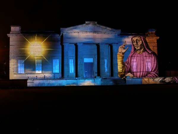 Projection on to the Yorkshire Museum front.