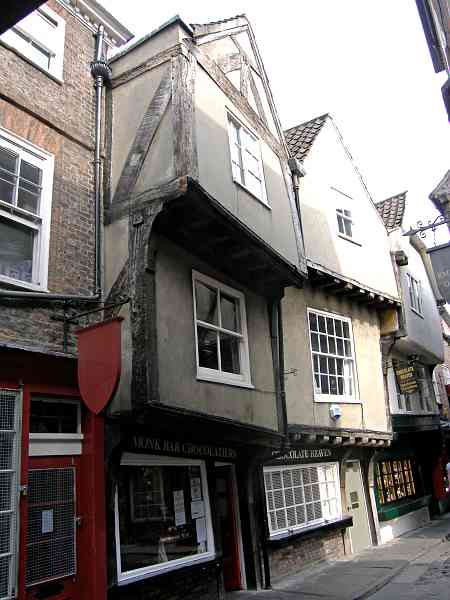 Number 7 (nearest) is of the late 15th century, number 8 is a little earlier before 1450. The jettied second floor of number 8 was raised in the early 19th century. (Ref. 1)