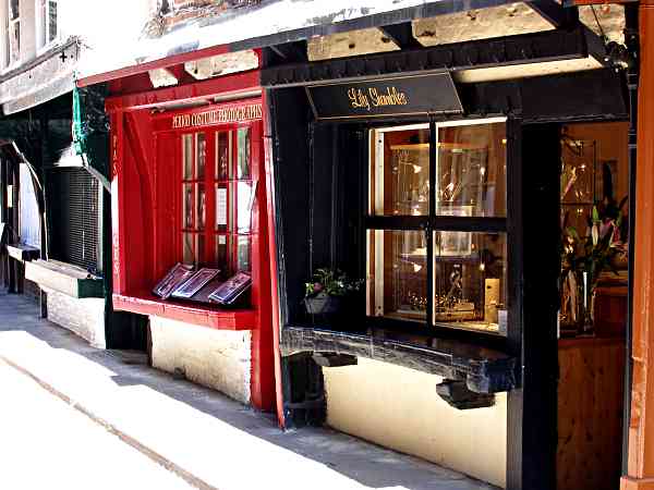 The wide shelves of the old butcher's shops.Imaging the absence of windows above these shamels, with the meat spread out for sale. These were the origin of the name by which this street is now known: The Shambles. Photo: taken 3 May 2007 |