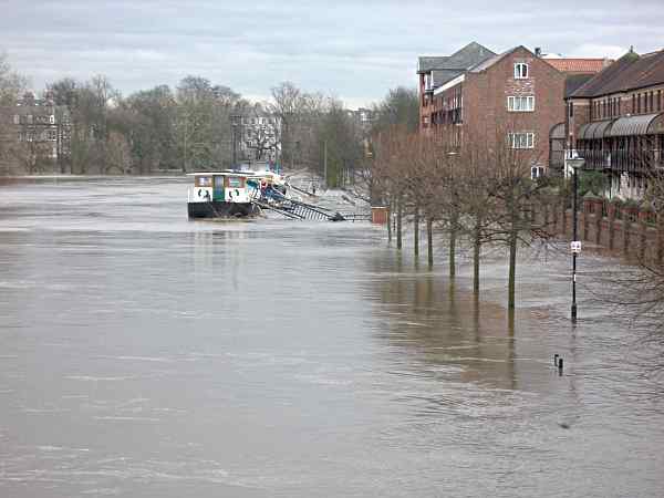 Barges may float on the flood water, but getting to them is a problem.