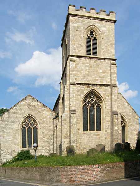 19th centuryThe church had a central tower and spire (35 m, 116 ft tall) which was damaged by a cannon ball in the Civil War and by lightning in 1730. It suffered wind damage in 1778 and was removed. At the beginning of the 19th century sinking under the tower caused the original tower to be taken down and a new one built within the chancel but this tower was demolished in the mid 19th century and the current tower built on the west end of the church. (Ref. 1, 7) Photo: taken 2 June 2007 |